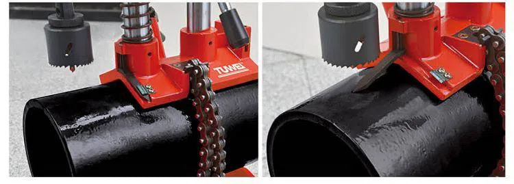 ● تم تصميم هذه الآلة لعمل ثقوب في الأنابيب البلاستيكية.أنابيب فولاذية مبطنة بالبلاستيك وأنابيب فولاذية.يبلغ الحد الأقصى لقطر الأنبوب الفولاذي 8 بوصات والفتحة القصوى 4 بوصات.