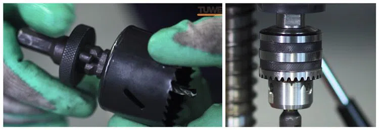 (1) إذا كانت ثقوب الحفر أقل من 38 مم ، فيرجى تحديد المثقاب المركزي الصغير لتثبيت مناشير الثقب المقابلة.
